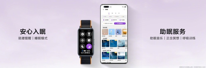 华为手环 8 支持就寝提醒、睡眠模式,助眠服务支持助眠音乐、正念冥想、呼吸训练等。