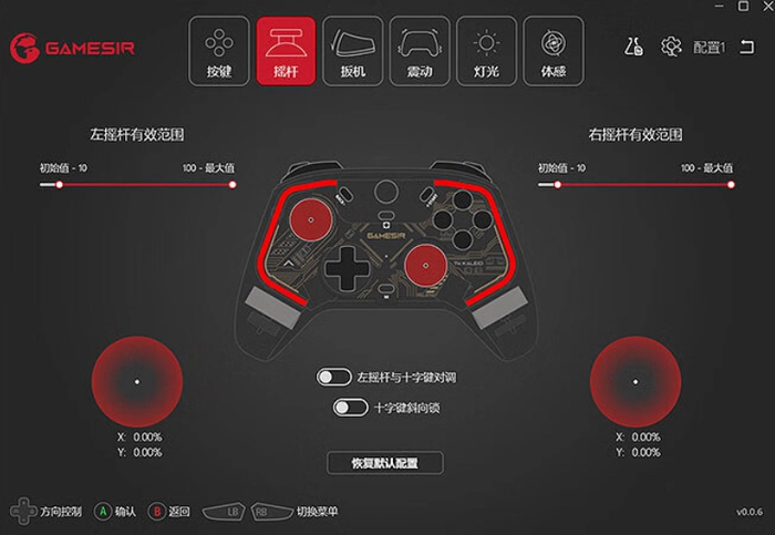 据介绍,盖世小鸡 T4 幻镜多平台手柄采用了霍尔 3D 摇杆,可自定义 0% 到 100% 的死区;配有电磁霍尔扳机,同样可设置 0 到 255 的死区。