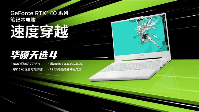 拥有高性能释放且支持光线追踪技术的NVIDIA® GeForce RTX™ 40系列笔记本电脑GPU已成为热门游戏本标配。时下当红的潮玩游戏本华硕天选4锐龙版,便采用了140W满功耗NVIDIA® GeForce RTX™ 4060笔记本电脑GPU。同时配备144Hz高刷电竞屏、90Wh大电池,支持双显三模显卡热切换和100W PD快充,助玩家高帧畅玩、实现速度穿越!