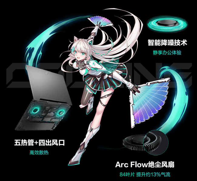 散热方面,天选4锐龙版采用了冰川散热系统。其拥有两个ArcFlow绝尘风扇、五热管和四出风口,强大的散热模组可高效排出内部积热,保证整机性能稳定释放。机身A面采用了梯形切割防止遮挡出风口,相比于常规设计可提升25%的散热效能,排热效率更高,此外还支持智能降噪技术,有效抑制风噪杂音,带给用户更加极致的游戏、休闲体验。内置三种散热模式,用户可通过FN+F5组合键自由调节,在安静、性能、增强三种模式中自由切换,满足不同使用场景需求。