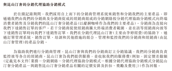 招股书显示,巨星传奇的主要业务包括新零售和IP创造及营运两大板块。其中,新零售作为主要收入来源,依托周杰伦带流量的一款微商产品——魔胴咖啡赚钱。巨星传奇招股书坦承,其新零售业务、IP创造及运营业务严重依赖周杰伦。根据魔胴咖啡宣传资料,该产品市场零售价为386元/盒。2020年,巨星传奇营收4.57亿元。其中,魔胴咖啡的收入约为3.33亿元,占巨星传奇当年总收入比例高达72.8%。因销售产品设立多级分销体系,巨星传奇曾被指涉嫌传销。招股书称,“因无端指控我们从事传销活动,我们在2020年及2021年收到了两个四线城市的当地市场监管局发出的两份诉前资产保全令。”这一指控牵动舆论。近年,魔胴咖啡的分销体系增长极其迅速。截至2022年12月31日,巨星传奇分销网络包括742名分销商及16044名经销商。而在2019年,巨星传奇的分销网络仅由74名分销商和2719名经销商组成。短短3年,巨星传奇的分销商数量翻了10倍,经销商翻了6倍。对此,时代周报记者以加盟名义联系了2名魔胴咖啡经销商,在介绍魔胴咖啡时,他们会首先表明其背后的老板是周杰伦,以此为产品背书。“周杰伦这么知名的明星,不可能投资不好的产品。”其中一位经销商表示。就上述多项事宜,时代周报记者致电巨星传奇集团、杰威尔音乐公司,并给巨星传奇集团发去邮件、给杰威尔音乐公司官方微博发去采访问题,截至发稿未获回复。发展30人,年入50万巨星传奇两次陷入传销漩涡,主要和魔胴咖啡分销模式有关。2020和2021年,巨星传奇曾两次被指控从事传销活动,其若干银行账户中的部分资金被暂时冻结以待进一步调查。两次账户临时冻结后,昆山市场管理局分别于2020年6月及2021年6月出具两份检查意见,判定其是合法的分销模式从事新零售活动。2020年7月及2021年7月全额解除其被冻结的资金。“成为经销商需投资34000元,其中32000元为货款,可拿货160盒咖啡产品,即200元/盒。其余2000元为保证金。”一名魔胴咖啡经销商向时代周报记者表示,经销商可通过零售赚取销售差价,同时也可招纳新经销商,赚取新经销商的推广费用以及团队折扣费用。上述经销商表示,如A直接招进一个经销商B,可获8%推广补贴;以后B补货,A永远享受16元/盒的推广费用。而对于B招进的经销商C,A可间接获得4%的推广补贴;以后C补货,A永远享受8元/盒的推广费用。不过,再往后D、E、F层级的经销商,A就不能获得推广费了。虽然A不再获得推广费,但上述经销商表示:“当A下面的经销商达到21人,A就可以申请成为分销商。之后,这个团队里其他人拿货,A都可以从中赚40元/盒的返利。”另据该经销商提供的资料,A下面的经销商团队每个月拿货达到一定数量,也有相应返现。例如,团购数量达100盒/月,可返现6元/盒,达300盒/月,可返现8元/盒,以此类推,团购数量越大,返现金额越大。中南财经政法大学法学院教授、中国商业法研究会理事乔新生对时代周报记者表示:“组团的人越多,折扣力度越大,很难被认定为是传销,电商有这种模式。”乔新生指出,传销是典型的“拉人头”获利,每发展一个下线,上线都能活力,“要确定一个公司是否以‘拉人头’获利,这需要税务机关、市场监管对公司的账目进行核查。”另一名经销商描述的加盟情况和上述经销商相同,不过介绍的方式有所不同。一位销商直接以年收入50万元为例,分解了上述步骤。经拆解,A如发展10个B,那么A可从10个B身上赚约20万元(B购买体验套装,A可赚差价1720元 x 10人 + B正式成为经销商购160盒 x 16元 x 10人 + B年销售1000盒 x 16元x10人= 20.28万元)。若每个B再发展2个C,按每个C年销售1000盒算,A可以从20个C身上赚16万元(1000盒 x 20人 x 8元 =16万元)。若A年销售1000盒(按平均利润80元计算),每年可以赚8万(80元 x 1000盒),再加上每个月团队折扣(打底2500盒 x 14元 = 3.5万元),A年收入就可达约50万元。也就是说,1名经销商如果能在1年内发展30个下线,且这个经销商自己能实现年售1000盒,则全年收入可以达到约50万元。昆山巨星汀奢电子商务有限公司(下称“昆山汀奢”)是巨星传奇的分销代理。4月14日,时代周报记者拨通昆山汀奢工商登记的电话,对方接通电话后迅速挂断。△图源:巨星传奇招股书
