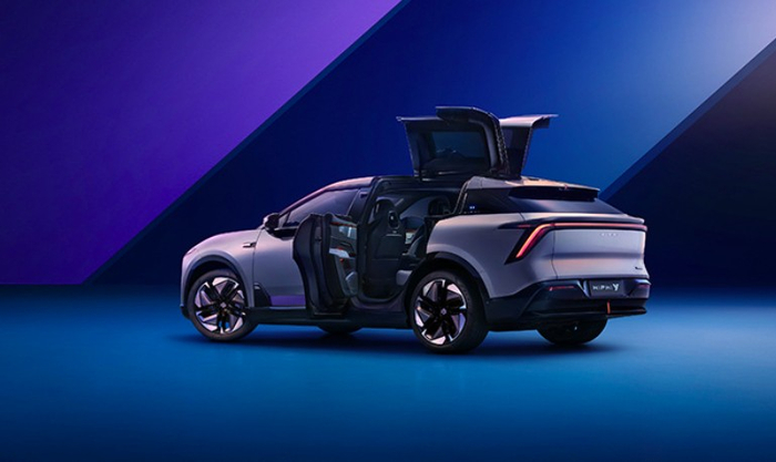 HiPhi Y依然继承了高合的豪华科技属性,采用了高合标志性的智能展翼门设计。