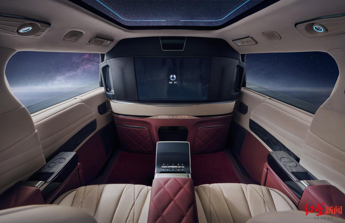 传祺E9前脸以鲲化鹏为灵感来源,展现鲲鹏伸张羽翼,通过灯带、灯组和灯语,诠释了中式美学奇幻的联想;内饰上,传祺E9拥有中式“云山珠水”和典雅的“歌剧殿堂”设计,于商大气得体,于家亲和优雅,消费者可根据审美自由选择。