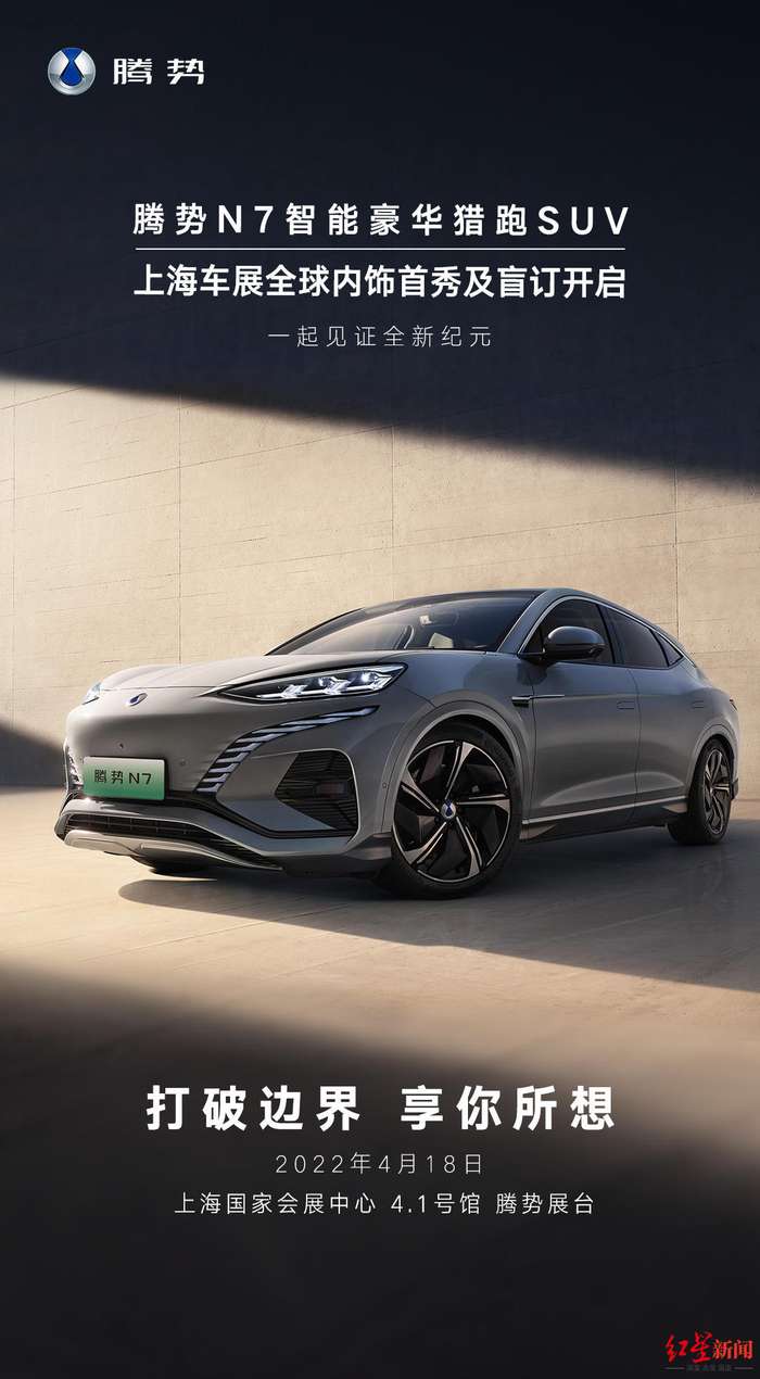 腾势汽车旗下智能豪华猎跑SUV腾势N7于4月18日开始全国盲订,并亮相上海车展,开启全球内饰首秀。