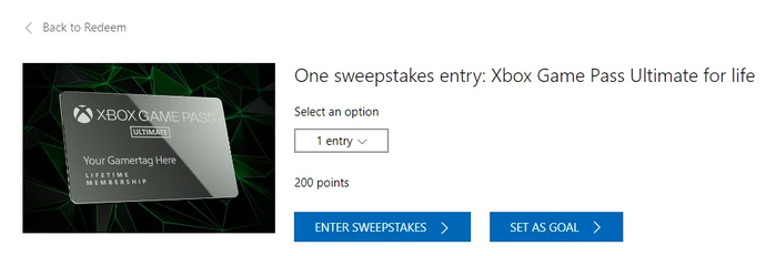 虽说Microsoft Rewards提供的奖品大多都只是小惠小利,但财大气粗的微软总会时不时拿出些丰厚的奖励用于推广自家的服务。去年10月,微软在美国举行了一次抽奖活动,玩家只需花费200点积分即可参与抽取终身XGPU会员服务,此外,中奖者还将获得一个印有其游戏ID的“终身Game Pass”纪念奖杯,奖品十分诱人。