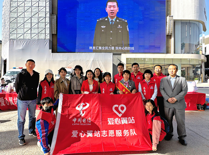 在北京海淀区华熙LIVE.五棵松,中国电信集团全渠道运营中心和北京分公司员工组成爱心翼站志愿服务队,联合北京市公安局刑侦总队共同开展了主题为“全民国家安全教育日,警企反诈在行动”的反诈宣传活动。活动现场,警企联合向广大市民推广全民反诈APP、反诈防范知识、宣传反诈法等,反诈知识板拍照打卡,派送反诈大礼包,全力营造全社会共同防范电信网络诈骗的浓厚社会氛围 。