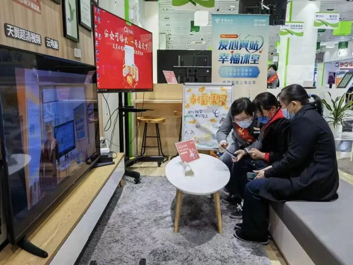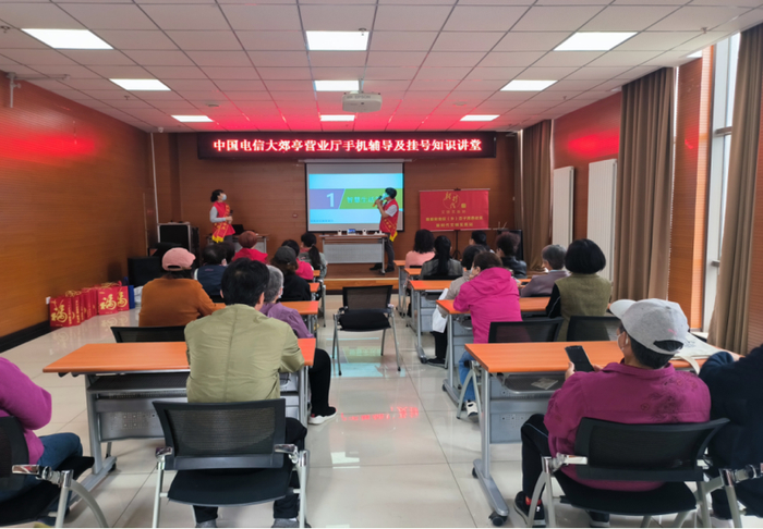 中国电信大郊亭营业厅爱心翼站,走进社区开设了幸福课堂,为老年人普及国家安全的基本知识与防诈知识。爱心大使手把手教老人操作智能设备,学习使用手机支付、医院挂号等,解决老年人不会用、不敢用的问题。活动结束后建立微信群,方便老人后续咨询交流,像这样的“幸福课堂”受到广大老年人的热烈欢迎,大家都很高兴能在课堂上与同龄人聚在一起,学习智能手机知识,开拓视野,聊聊生活琐事,增进感情。
