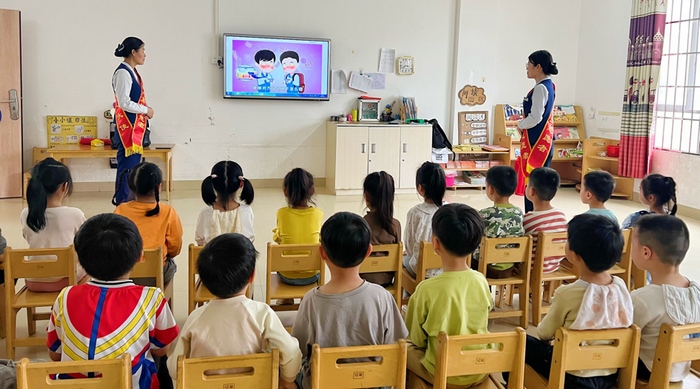 在广西贵港平南县欢乐幼儿园,瑞雁营业厅爱心翼站开展“全民国家安全教育日”小课堂活动。活动中,爱心大使给小朋友们讲解了国家安全知识、交通安全知识、防溺水防拐骗知识。在抢答问题领小奖品环节,小朋友们纷纷举手参与,生动的讲解让小朋友们都能听懂,知道如何保护自己,避免发生危险,幼儿园的老师对本次爱心翼站活动纷纷点赞。