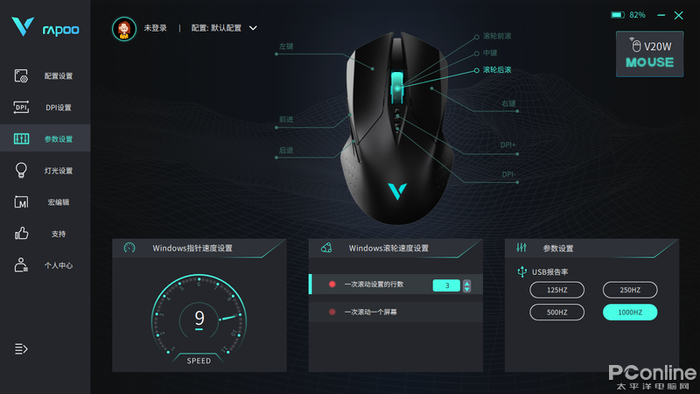 驱动可玩性方面,雷柏V20W支持9键编程,通过软件实现,还可以录制鼠标宏,方便在一些需要复杂操作的地方生产力软件中实现一键操作。