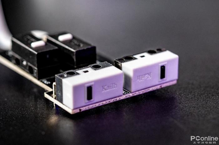 侧键以及DPI调节键均采用凯华微动,手感清脆,触发灵敏。侧键为凯华黑点,DPI键为凯华白点。