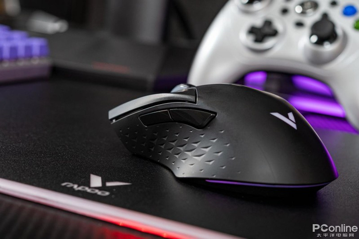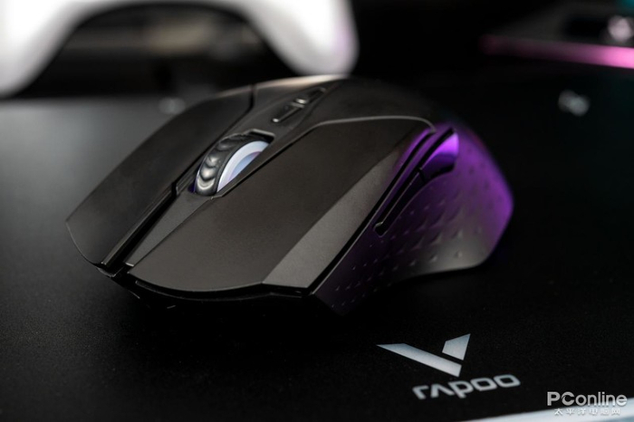 无线充电对如今的无线鼠标来说也是一项重要配置,可以让鼠标完全脱离线材束缚。在闲暇之余给其快速补能,续航不间断,这里我们搭配了雷柏自家的V10RGB鼠标垫进行测试,鼠标垫充电指示灯呈现红色,鼠标滚轮处呈白色灯光即为充电中.