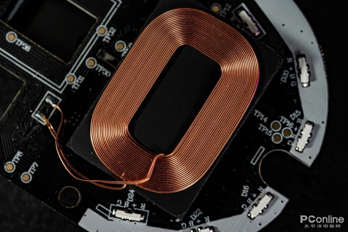 主板背部是鼠标的无线充电模块以及尾部LED灯组,不得不说,这么轻的重量还能塞下无线充电,可见雷柏在V20W上诚意满满。