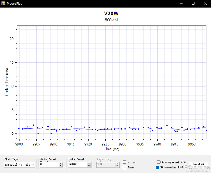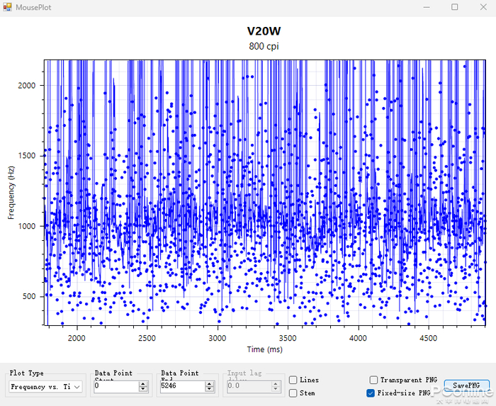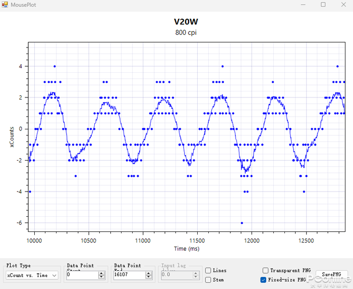 至于xCounts快速画圆测试,原相3335和顶尖的3399或者3395还是有一定差别,不过,离散点偶有较大偏离,但是在雷柏调校下也能呈现出不错的水准。