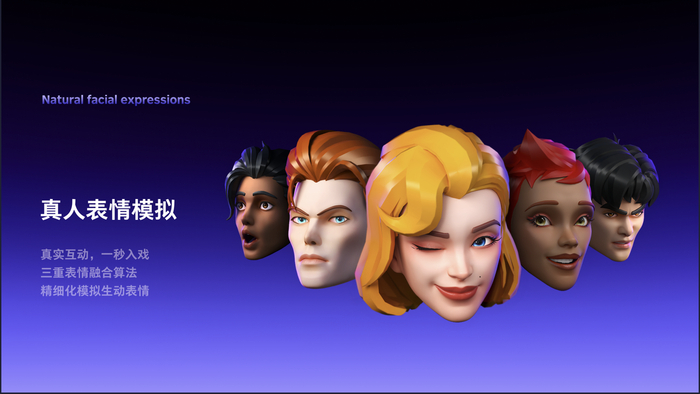 真人表情模拟即将用户真实表情映射到 VR 虚拟形象之上,如用户眨眼、笑、说话时,虚拟世界的 Avatar 也会同步做出相应表情或口型。有了该功能的加持,用户在 VR 世界里和朋友们交流时,可以通过表情来察觉对方的情绪,从而获得更真实的互动体验。