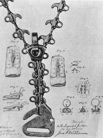 彼时拉链尚未问世,纽扣依然是长筒靴的必备装置,一双靴子上往往排布着20多个纽扣,穿脱极为不便。1851年,美国人伊莱亚斯·豪申请了类似拉链的设计专利,但因为结构过于复杂,难以量产,以至于它被遗忘了近半个世纪。
