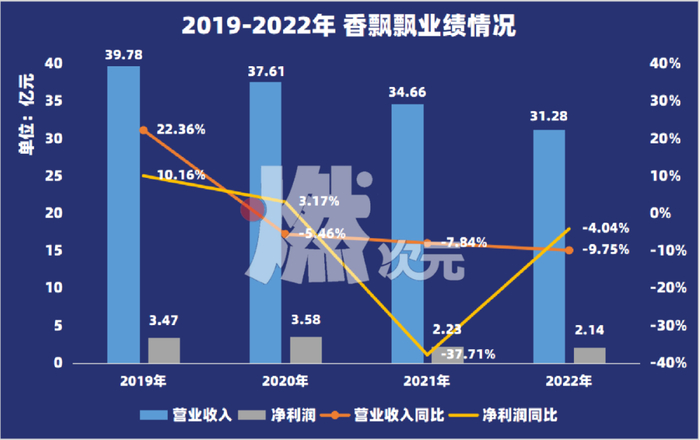 没能俘获消费者芳心的香飘飘,在二级市场的表现也渐落下风。据二级市场数据显示,在2019年冲泡类奶茶市场利好的情况下,香飘飘股价也曾一度站上38.4元/股的高点。但如今香飘飘股价较高点近乎腰斩,截止4月18日,香飘飘股价为20.44元/股,如今仅有83.96亿元的市值和2019年157亿元市值的高位也相去甚远。尽管近年以来,香飘飘为了迎合消费者,也进行过许多尝试,在杯装奶茶的基本盘之外,香飘飘还上新了果茶和港式奶茶两大新品类。此外,香飘飘每年在营销推广上也是没少进行支出,请当红流量当代言人、冠名赞助电视综艺节目……大手笔的营销推广加持下,香飘飘并未淡出众人视野。一杯杯售出的杯装冲泡奶茶,曾为香飘飘带来一年超30亿元的收入,也为香飘飘创下一圈圈“绕地球”数的吉尼斯纪录。但香飘飘的增长下滑的趋势却不容忽视。当“喜茶”们取代香飘飘成为年轻消费者下午茶选择时,香飘飘“连续11年杯装冲泡奶茶市场份额保持第一”的故事又还能讲多久?香飘飘跌落神坛“香飘飘”所代表的“冲泡杯装奶茶”,在奶茶拥趸心目中,更像是“上古时代”的产物。“现在遍地都是奶茶店,喝个奶茶不是轻而易举的事情吗?难不成还先去超市买杯香飘飘,回家再煮热水泡开,这未免有些‘劳师动众’了吧?”过去也曾是“香飘飘”和“优乐美”爱好者的90后姑娘冯恬直言,自己已经很久没买过冲泡类奶茶了。“十几年前还在上初高中时候,最爱买这类冲泡奶茶,那时候最常买的还是最便宜的袋装奶茶粉末,热水一冲就是一杯饮料了,好喝还不贵。”“和我差不多岁数的人,没听过优乐美代言人周杰伦那句‘你是我的优乐美’,应该也听过香飘飘‘一年卖出X亿多杯,杯子连起来可绕地球X圈’的广告语吧。”冯恬笑着说,虽然也就十几年前的事情,说起这耳熟能详的广告语仿佛还是昨日光景,但在生活中却总觉得这已经过去好久似的,“我自己都想不起来上一次喝香飘飘、优乐美是什么时候了。”既然“冲泡奶茶”无法激起消费者的购买欲望,反映到香飘飘公司层面的,便是业绩增长接连三年下滑。值得注意的是,在过去的2022年,香飘飘对冲泡产品的经典系列、好料系列进行了提价,主要产品提价幅度为2-8%不等。并表示,“截至2022年第三季度,公司产品提价已基本完成。2022年第四季度,提价策略在冲泡产品的销售旺季执行到位,产品营收和盈利能力均得到提升。”单从2022年四个季度的收入情况来看,提价后的香飘飘在营收上的确有了很大增长。其在2022年第四季度的营业收入为15.98亿元,相当于一季度的收入占到香飘飘2022年全年收入的51%。但靠涨价就能让香飘飘业绩实现同比增长?显然也未必。正如香飘飘自称,“本次部分产品调价可能对公司产品市场占有率有一定的影响,加上成本上涨因素,本次产品调价不一定使公司利润实现增长,调价对公司未来业绩的影响具有不确定性。”香飘飘的主营业务分两块,分别为“冲泡”和“即饮”两大从产品板块。对此,香飘飘称,2022年坚持“双轮驱动”战略,冲泡业务,持续推动产品的“年轻化”“健康化”升级;即饮业务,积极发力产品品类创新,强化渠道服务能力建设。但效果却很难让人满意。财报显示,2022年,香飘飘冲泡业务的营业收入为24.55亿元,同比下降11.55%;即饮业务的营业收入为6.38亿元,同比下降0.69%。其中,在2022年对两大冲泡产品系列进行了提价策略的冲泡业务,销量虽然是同比减少了11.55%,但销量却同比减少了18.11%。对于冲泡和即饮这两项主营业务的疲软,香飘飘表示,“冲泡业务是公司的利基业务,将继续推冲泡业务的创新,包括进一步推进产品及品类的健康化升级,完善产品的研发及创新路径,积极探测新的更加丰富多样的泛冲泡产品及场景。”针对即饮业务,香飘飘则表示,“2023年将会是即饮业务的新起点,将加大即饮业务的费用投入力度,组建独立的即饮业务销售团队,增加即饮业务的人员配置,挖掘有潜力的新品类和新产品,推动即饮业务的成长。”但对于香飘飘的发展前景,朱丹蓬指出,香飘飘这家企业存在的问题非常多,“品牌老化、产品老化、渠道老化、客户老化、团队老化,这些都是这家企业的硬伤。”“当然最近几年香飘飘也做出了很多创新,对产品进行了升级和迭代,但目前来看,改变的整体效果并不明显。”朱丹蓬认为,香飘飘的品牌核心在于三四五线城市,但其现在创新的产品却主打一二线城市的市场,“但在一二线城市,香飘飘的品牌力是不足的。公司发展前景依旧存在很多不确定因素。”整体来看,香飘飘的“双轮驱动”战略,想象很丰满,但从交出的业绩“三连跪”成绩单来看,现实无疑是骨感的。“第二成长曲线”何在?当90后和00后都爱上喝新式茶饮的“喜茶”们,以冲泡奶茶起家的香飘飘显然处于下风。自身但对于当下的香飘飘来说,被年轻人“抛弃”的同时,香飘飘也在无意识间“远离”年轻人。正如朱丹蓬所分析那般,香飘飘这家企业的品牌、产品、渠道等整个体系都存在“老化”问题,让品牌在新消费群体中逐渐被边缘化。香飘飘何以至此?与其自身的品牌认知和产品定位有很大关系。在2020年香飘飘举办的“国民奶茶节”活动中,董事长蒋建琪在被问及,面对崛起的新式茶饮香飘飘如何保有竞争力相关问题时。蒋建琪的回答是,对于自身冲泡奶茶产品的最正确定位是“冬天里的热饮”