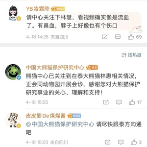 随后,热心网友立即通知动物园饲养员及兽医进行检查。下午3时许,中国大熊猫保护研究中心也已关注到在泰大熊猫林惠相关情况,正会同动物园开展会诊。