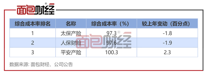 综合成本率:太保产险、人保财险成本率均低于98%