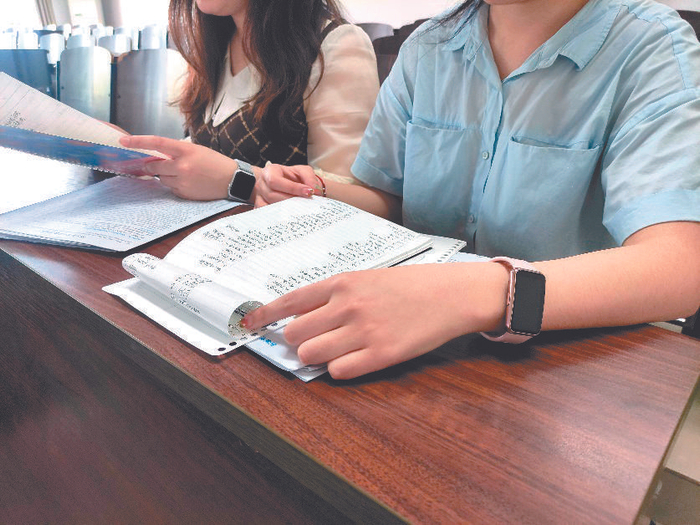每天早上8点,她们准时在图书馆相见,与对方交流今日的“to do list”,然后开始各自的学习。晚上学习结束后,她们会交流今日学习进度、正确率,是否完成了给自己定下的任务等。