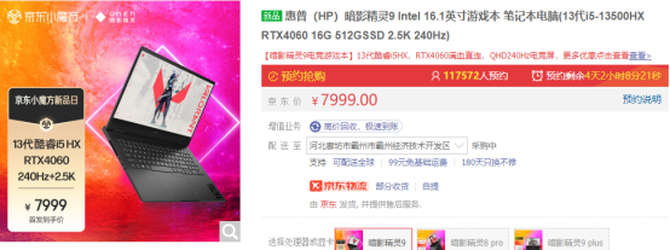 总结一下,这款有着超高性价比的OMEN暗影精灵9搭载了13代i5-13500HX处理器、RTX 4060显卡、16GB+512GB存储、2.5K+240Hz高分高刷电竞屏,仅售7999元,可以说是性价比十足;如果对于处理器有着更高的要求,还可以选择i9-13900HX+RTX 4060配置的主推机型,售价也仅为8799元。如果你也追求一款让你能酣畅游戏的游戏本,相信这款全新的OMEN暗影精灵9是非常不错的选择,现在OMEN暗影精灵9全系产品已经在OMEN暗影精灵京东自营旗舰店、中国惠普官方商城、抖音HP惠普官方旗舰店上线,感兴趣的小伙伴抓紧去抢购吧~