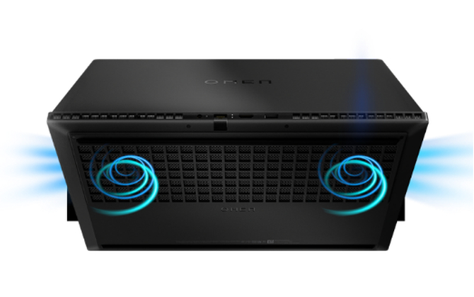 OMEN暗影精灵9同时也对散热系统进行了升级,搭载的增强版酷凉风暴散热技术,拥有两进四出六风道设计以及五热管配置,能够带来可观通风量和极 佳的导热能力。