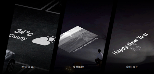 独创的双反射镜头数字投影大灯实现超近场投影,问界M9可通过投影打造个性化迎宾动画及活动空间,满足用户多元化的行车交互和娱乐需求。