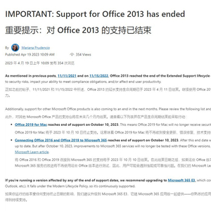 IT之家 4 月 20 日消息,微软近日再次发布公告提醒,已于 2023 年 4 月 11 日停止对 Office 2013 的“扩展支持”(extended support),意味着 10 年的产品支持周期正式结束。