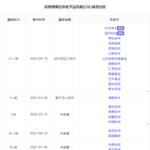 融资丨「徐州博康」完成超6亿元融资,中平资本、国开科创领投