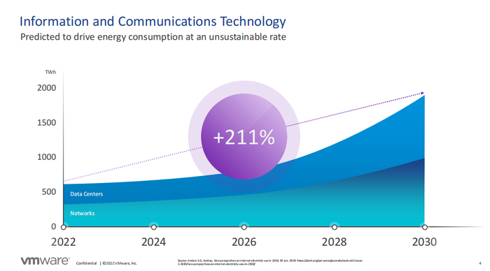 面对当前大环境问题,VMware 高级副总裁兼首席执行官 Kit Colbert 先生,介绍了 VMware 如何用创新的技术手段支持信息与通信技术(ICT)行业的能源转型,实现可持续发展。