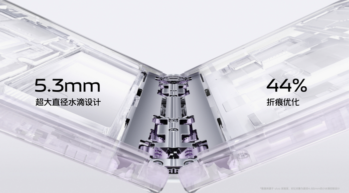 vivo X Fold2在延续旗舰配置的基础上,通过30多个维度的专项优化,对比上一代减重约33g、厚度降低2毫米。在实现轻薄手感的同时,vivo减重不减质,全新的超耐久轻量铰链以更好的稳定性和耐疲劳强度,通过了40万次莱茵TÜV折叠无忧认证,将折叠寿命提升了33%,并带来镜面般平整折痕,万次折叠依然平整如新。