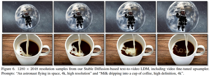 此外,研究者进一步对公开可用的潜在 Stable Diffusion 上采样器进行视频微调,使它支持 4 倍放大并生成分辨率为 1280 × 2048 的视频。研究者生成了由 113 帧组成的视频,并可以渲染成 4.7 秒的 24 fps 或 3.8 秒 30 fps 的片段。相关样本如上图 1 和下图 6 所示。