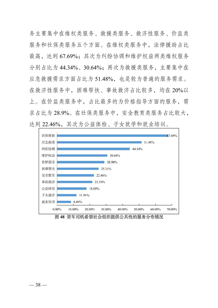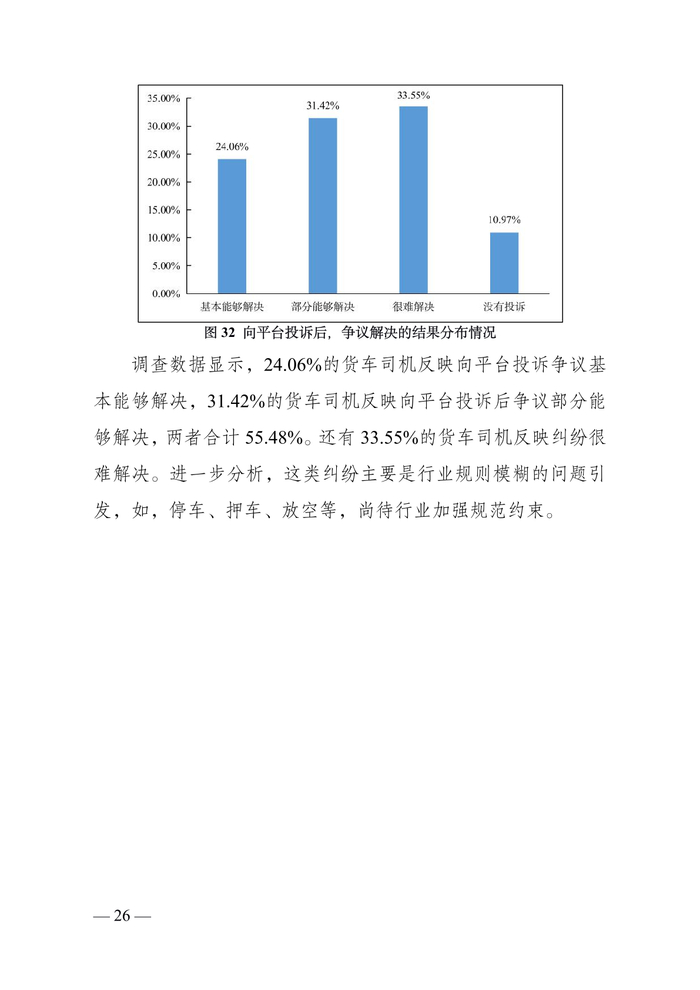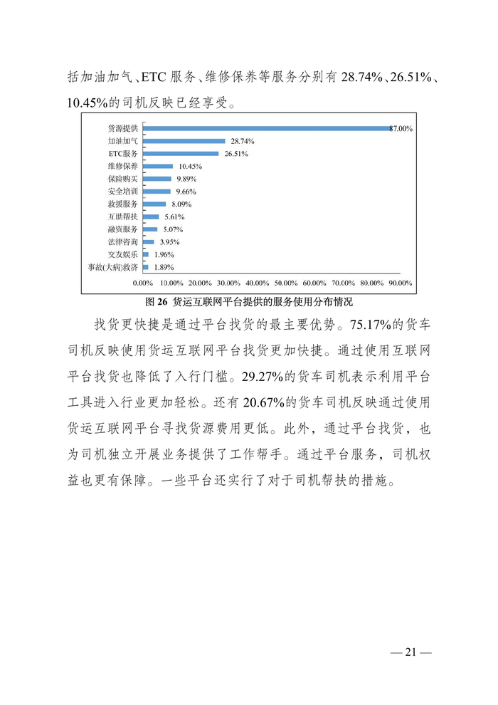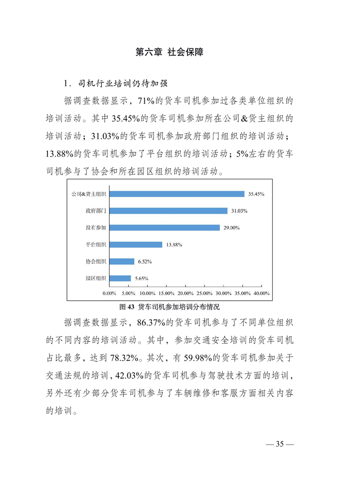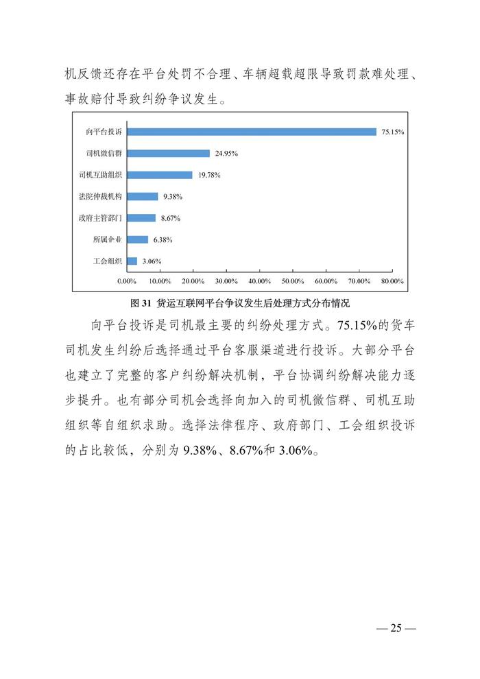 货车司机中“老司机”占比较为稳定。调查数据显示,从事道路货运 5 年以上的货车司机占比为 79.01%;10 年以上的占 比为 58.11%;15 年以上的 35.95%;20 年以上的 19.23%。“老 司机”仍然是主要就业群体。同时,调查显示,从事道路货运 5 年以下的司机占比为 20.98%,较上年调查有所增加,一批“新 手”涌入市场。
