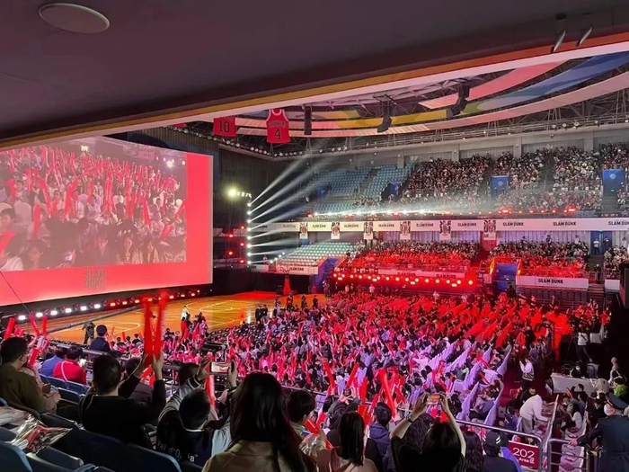 在日上映半年后,《灌篮高手》剧场版终于定档了国内大荧幕。4月15日,27米的巨幕被搬进了北京大学邱德拔体育场,在长达五小时的首映礼上,4000名观众浸式感受了篮球赛的热情。这场特殊的首映礼刷屏了社交网络,甚至让日本网友羡慕不已。