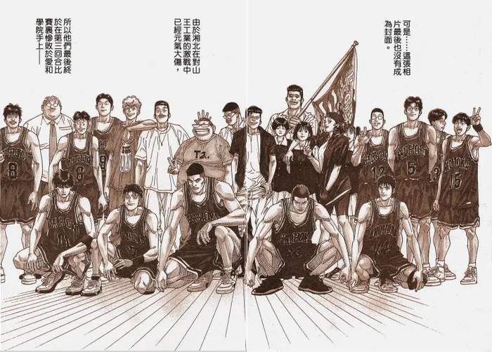 时间来到1996年的盛夏,湘北在第二回合中战胜连冠王山王,全国大赛刚刚拉开帷幕,井上雄彦用一句话便带过了后续比赛:“湘北元气大伤,在第三回合中惨败给爱和学院。”这一幕成了无数人青春的遗憾。