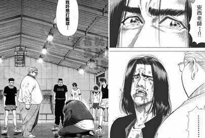 三井因伤离开球队,走上歧途,又因为热爱回归。上演了浪子回头的戏码,名台词被传唱至今。