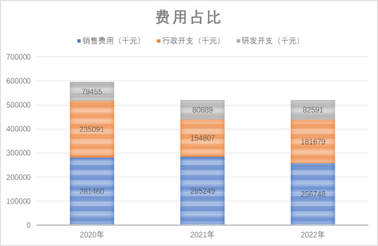 销售费用和行政开支是猪八戒网费用大头。2022年,二者之和达到了4.38亿元,占收入比例达到了收入的8成;研发开支为0.83亿元,只占15.3%。2020年和2021年也是如此,销售开支和行政开支的占比为68.3%和57.4%。