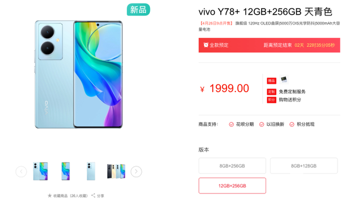 vivo Y78+上架:首创天青瓷质感工艺 起售价1599元