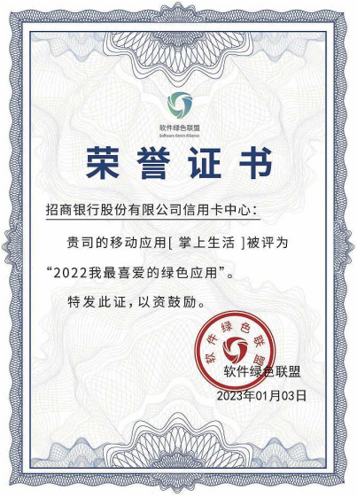 在软件绿色联盟2022年度“我最喜爱的绿色应用”评选中,掌上生活App获评“我最喜爱的绿色应用”便捷生活类第一。软件绿色联盟是由阿里巴巴、百度、华为、腾讯、网易五家企业共同发起的绿色软件生态组织,年度“我最喜爱的绿色应用”评选,是绿盟对行业标杆应用的一大认证。