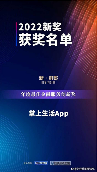 在2022年“新奖”评选中,凭借推动金融数字化转型及行业领先的金融科技能力,掌上生活App斩获“年度最佳金融服务创新奖”。《财经》“新奖”已举办至第五年,秉承客观、公正、权威的原则,集中展现各类优秀市场主体的突出贡献,推动产业和市场不断升级。