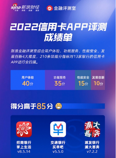 在由新浪财经金融评测室举办的“2022信用卡App评测”中,鉴于在用户体验、功能服务、性能安全、发展创新4大维度的优异表现,掌上生活App以“91.625 分”的高分蝉联第一。据了解,该测评对行业13家银行的信用卡APP进行了全维度测评,同时引入行业专家、第三方技术机构提供观点与数据支持,极为客观、公正。