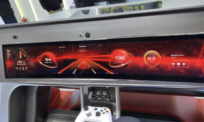 车展现场,该套座舱方案配备了一块 30.4寸的一体化大屏,大屏内同时显示仪表、中控、副驾等界面,界面UI 采用的是中科创达的HMI2.0 方案,通过自研的渲染引擎实现全3D 的视觉交互效果。该车机UI 界面还支持用户自定义,用户能够像设置手机主题一样来修改车机的主题视觉效果。