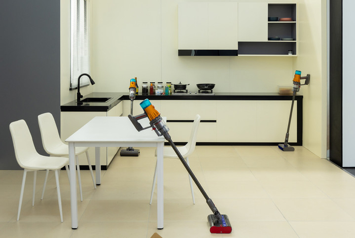 当然,新品除了用于洗地,还能用于吸尘,吸尘就不用强调了,毕竟戴森的老本行。