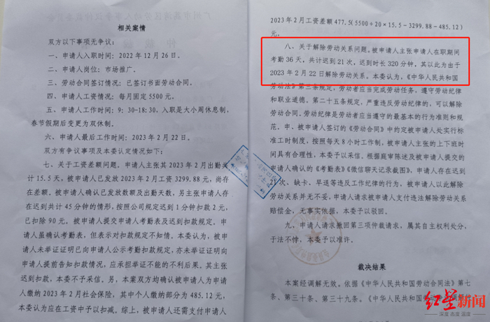 4月20日,抖音账号白鹿视频发布一则题为“女子入职58天迟到21次,被辞退后申请劳动仲裁,庭审当天迟到16分钟”的视频。视频中,涉事公司负责人卢先生称,该女子于2022年12月26日入职;由于团队是2022年8月创立,处于员工紧缺的情况,又看到其有4年的工作经验,于是就聘用了她。但该女子不仅平时上班会迟到,此前面试时也迟到了一个多小时,后来申请劳动仲裁开庭时又迟到16分钟。且裁决结果出来之后,该女子还在朋友圈发文诋毁公司和仲裁委。
