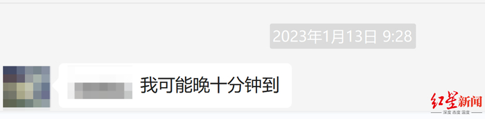 在卢先生提供的相关证据中,红星新闻记者看到,该公司去年12月25日至今年2月28日的考勤月度表上,李某共出勤36天,迟到(严重迟到/旷工迟到)21次、早退1次、旷工9天,且并无加班记录。而在这期间,涉事公司方曾通过微信询问李某为何迟到,李某则以“闹钟没响”“人太多路又滑走慢了”“坐错方向了”等为由进行解释。同时,李某也曾多次向公司相关负责人员发微信表示要“晚到几分钟或十几分钟”。