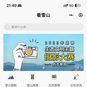 小程序以展示成都雪山美景、生态场景为载体,将雪山指数与空间概念相结合,为社会公众搭建起集参与、分享、互动于一身的线上交互式平台窗口,吸引和鼓励市民积极参与生态文化建设与传播。据了解,“雪山指数”板块能够自动定位用户当前所在区域,同时能获取当日及未来两天的雪山指数预报,并且能够以手机指南针的图标自动显示距离用户最近的雪山所在地的方位、坐标以及所距公里,十分方便。