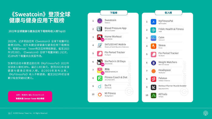 受新冠疫情的影响,全球健康与健身应用下载量在2020年增长近50%。与此同时,该赛道应用内购收入也持续多年高速增长,2022年再度提升19%至28亿美元。本报告将介绍健康与健身应用全球下载量和收入趋势,以及头部应用和发行商表现,同时针对该品类广告投放进行深入分析。请点击“阅读原文”下载完整的报告内容。