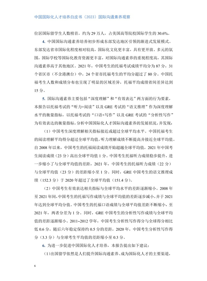 6. 为进一步促进中国国际化人才培养,本报告提出如下建议: