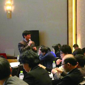 朱毅在学术交流会上发言。