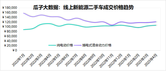 趋势四:不惧降价潮,4月份新能源二手车成交均价涨3000元,与去年12月份持平