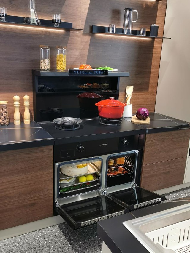 帅丰家新品【天机3】—TJ3-8B蒸烤同步集成灶更是采用了左蒸右烤的设计,支持蒸烤同步进行,可实现多种烹饪模式,能蒸擅烤实用性非常强!